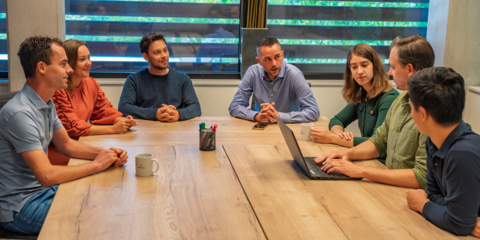 Meeting met IT consultants om inhoud voor een blogserie te verzamelen